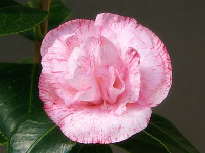 淡桃地 紅色吹掛け絞り 八重 牡丹咲き 筒~割りしべ 大輪