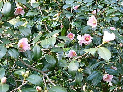 服部緑地 都市緑化植物園の「白侘助 シロワビスケ」