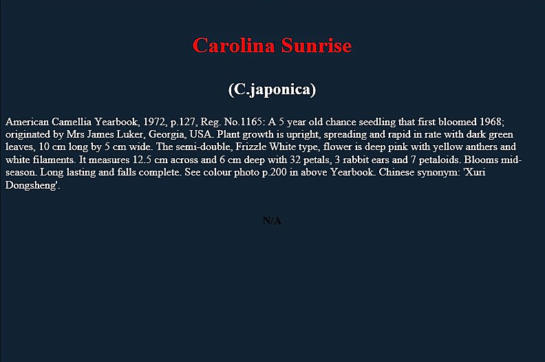 ツバキ Carolina Sunrise カロライナ・サンライズ
