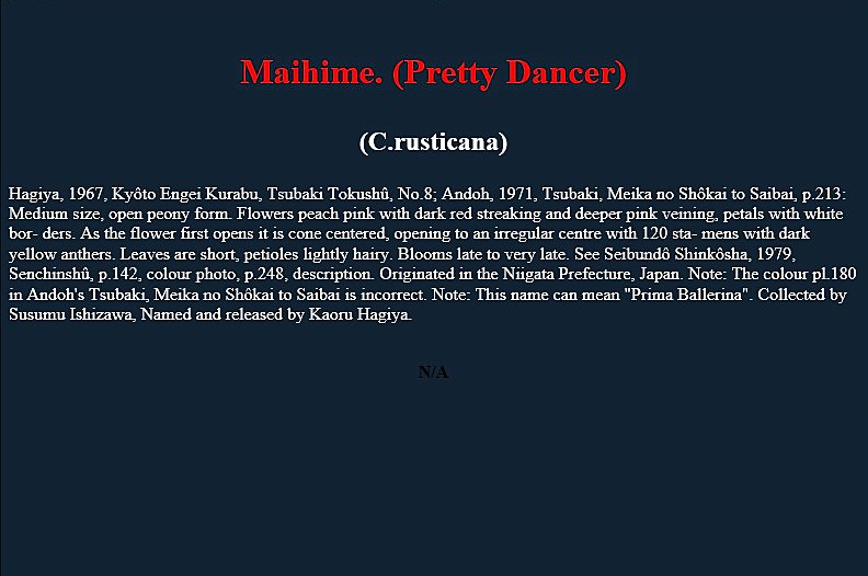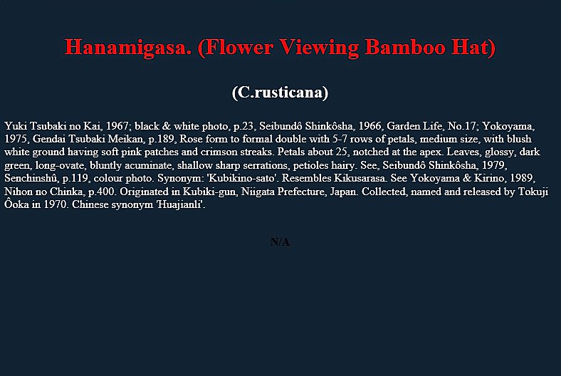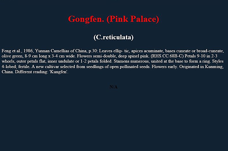 synonyms: 'Flat Tali Camellia', 'Flat Petalled Tali Camellia', 'P'ingpantalich'a'